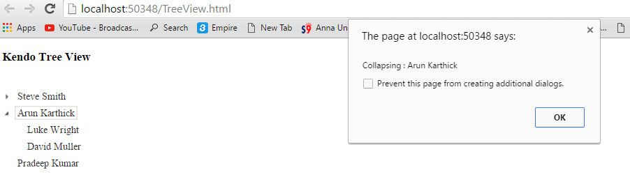 Now our API's are ready, so let us play with events in Kendo Tree View.