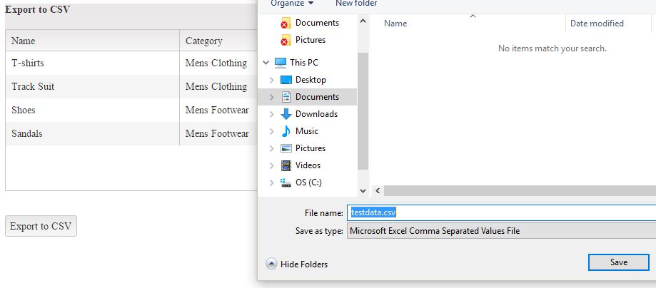 - viewModel.exportCsv('test-grid', 'testdata.csv');