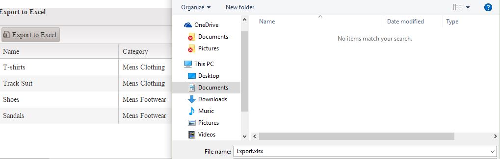 Note: The Excel generation feature needs the JSZip JavaScript library.