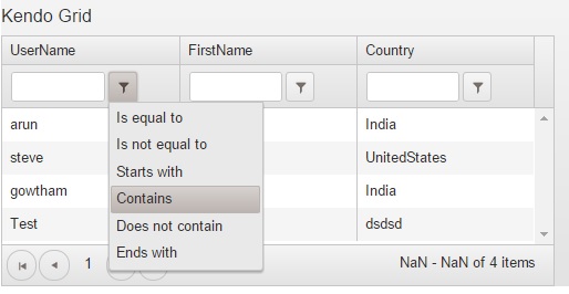 This article explains how to do the external and internal Search/Filter in Kendo Grid UI.