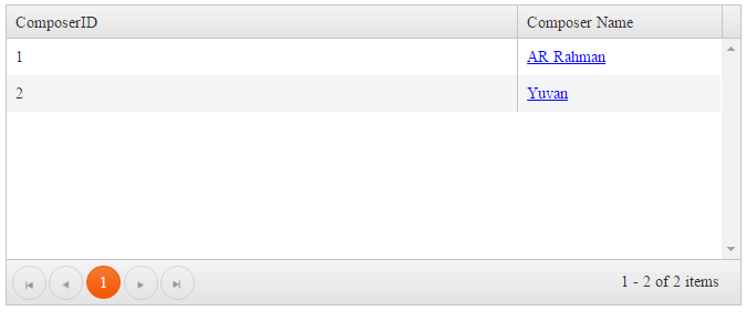 1. We have kendo grid which is bounded with api/Musics/Composer service response.