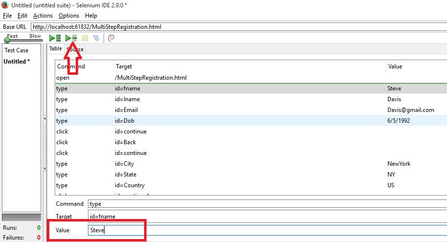 Multi-Step-Registration form using Kendo UI to explain the application of the Selenium IDE.