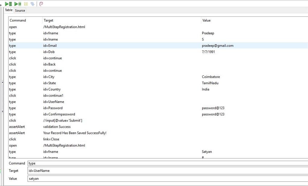 Now the action done by the user is recorded in the Selenium IDE as in Figure 6.