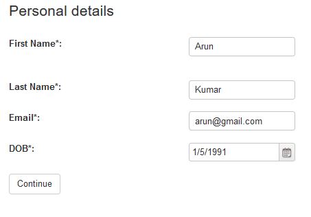 The Registration form shown below consists of three steps and each step consist of three fields as in the following figure: