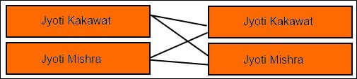 First “Jyoti Kakawat” will make a pair with herself (1 row), then she'll make a pair with “Jyoti Mishra” (2 rows). Then, “Jyoti Mishra” will make a pair with herself (3 rows) and then she'll also make another pair with “Jyoti Kakawat” (4 rows).