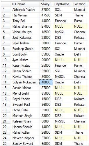 Right Outer Join“RIGHT OUTER JOIN” keywords are used to do Right Joining.