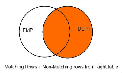 A right outer join is nearly the same as a left outer join. A right outer join retrieves matching data from both of the tables + non-matching data from Table B.