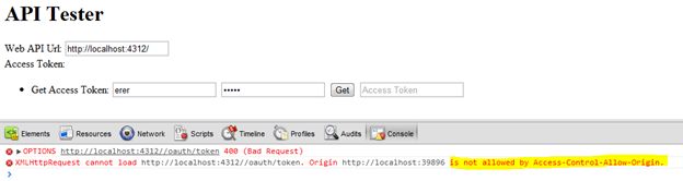 The preceding section assists us to enable CORS for the web API only, not for the Token middleware Provider that the client requested to issue the token using OWIN.