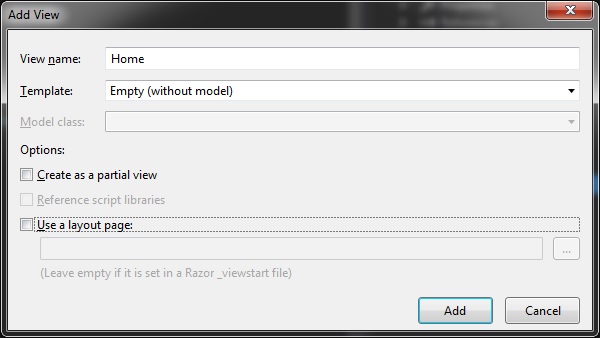 Till now we created classes for “Controller” and “Model”. We didn’t create any views till now. In this step we are going to create a view, which is going to act as a “home” page for our application. In order to create the view: