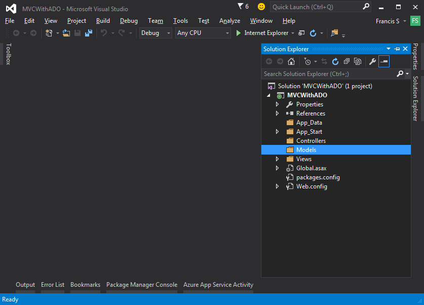 Our DB access code are going to be placed inside the “Models” folder. Model is just a “Class” file. So we are going to create a Model class for our purpose as below: