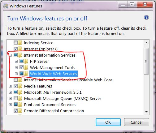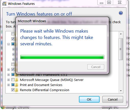 Windows Features” popup in that check the check boxes as shown below.