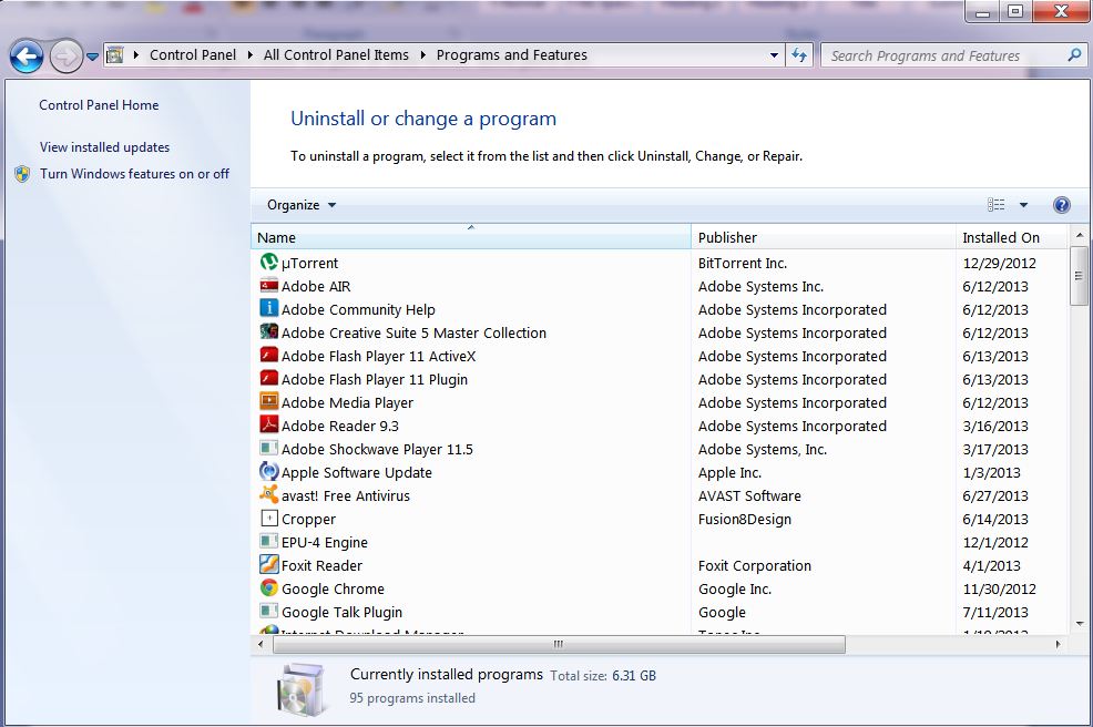 Step 1: Go to "Control panel" and select "Programs and Features" or simply type “appwiz.cpl” in run.