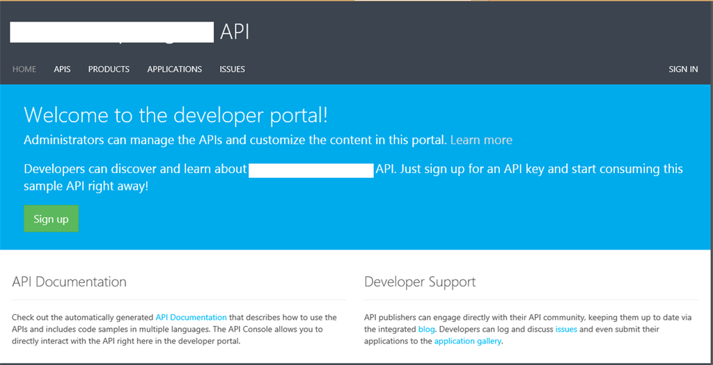 This will be the default Home page for every developer. Developers can go through the app APIs documentation, your API Blog (if created) and other applications (if you are providing any for any Product).