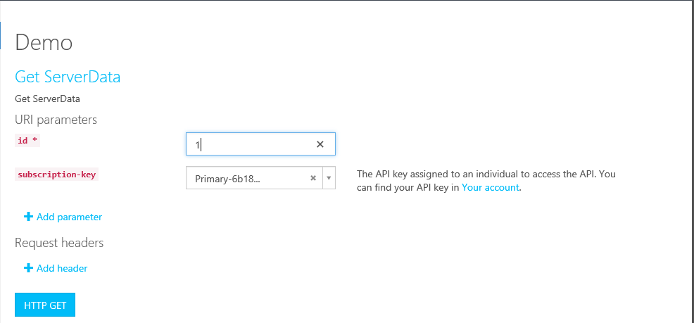 - Here you can see that our Request URL requires a subscription-key that is nothing but our Primary/Secondary API key, provided by Azure API MANAGEMENT as per subscription.