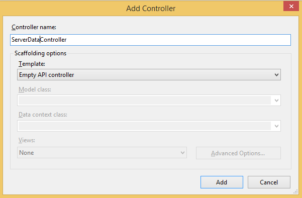 To add a model, right-click on the Models folder from the Solution Explorer and choose class and name it "ServerData".