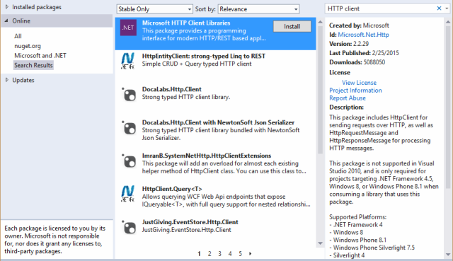 - Install-Package Microsoft.Net.Http