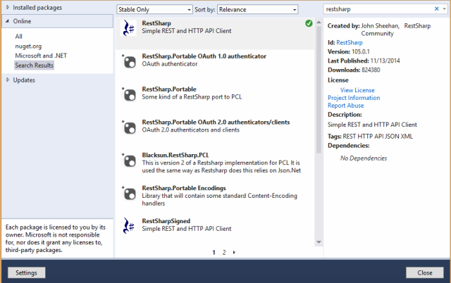 In this article, we will use RestSharp for Windows Phone, a ReST client. Let's add the same from Nuget: