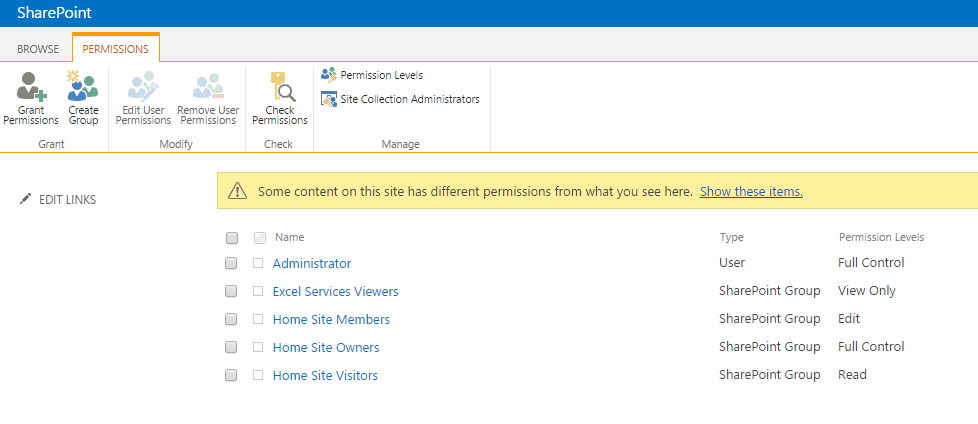 Once permission is set,"sptest" account created in AD will have the required credentials to navigate through the portal.