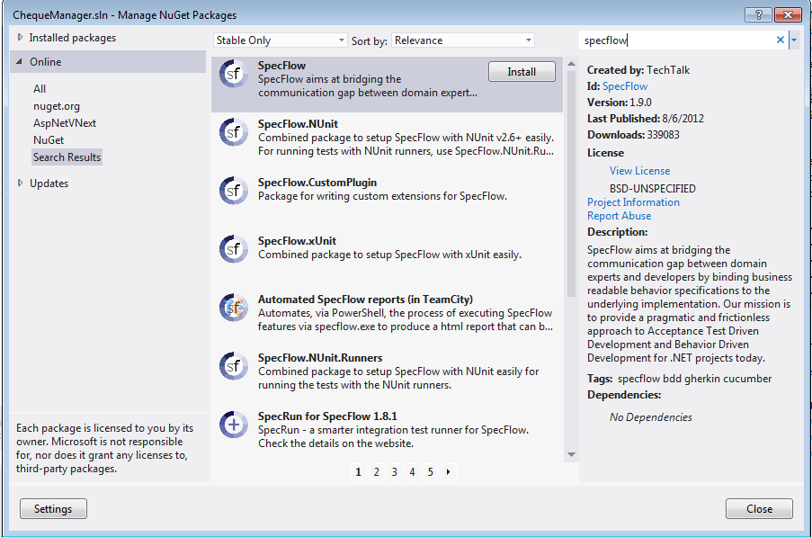How to Include Specflow in .NET projectsInstall Specflow from the NugetPackage Manager:
