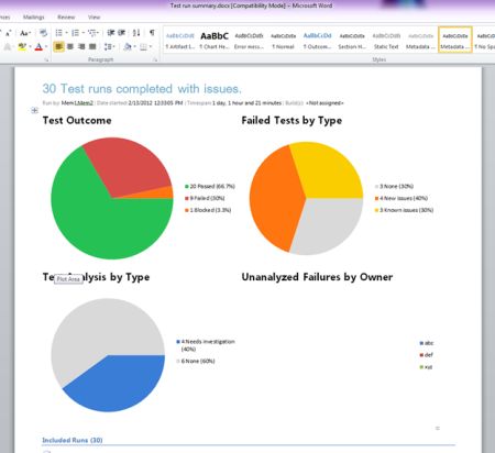 The Test Plan document will display the following Test Plan details, Test Suite details, Test Case details, and Test Configuration details. By default this Word document will be saved at the location: