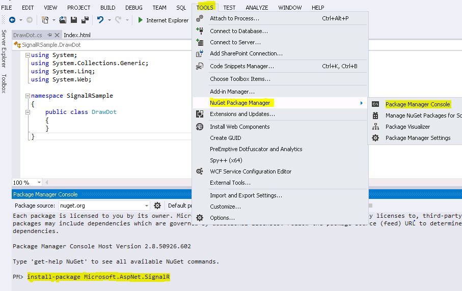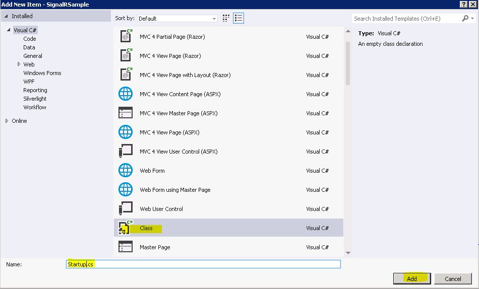 - [assembly: OwinStartup(typeof(SignalRSample.Startup))]