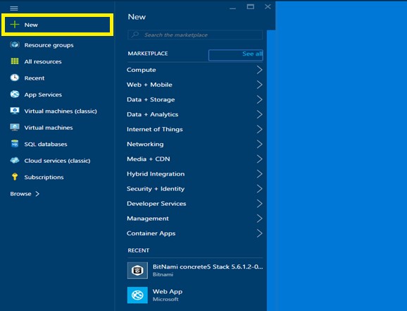 Firstly, go to your Azure Portal and need to click on NEW.