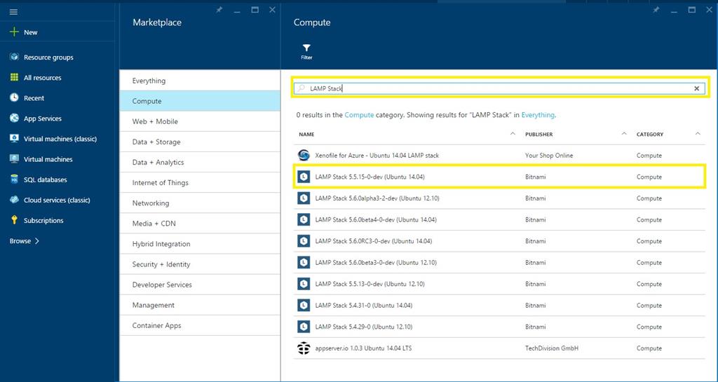 Now you search LAMP Stack in Filter box and choose LAMP Stack 5.5.15-0-dev (Ubuntu 14.04).