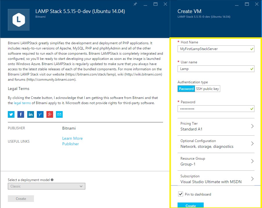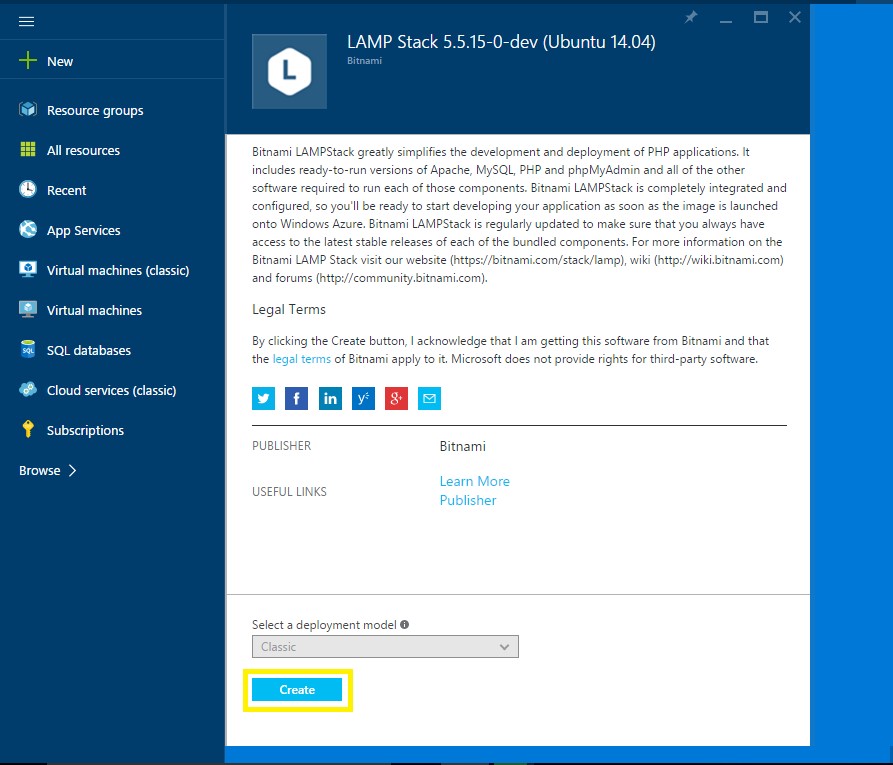 Now you will get Bitnami LAMP Stack page and click on Create button.