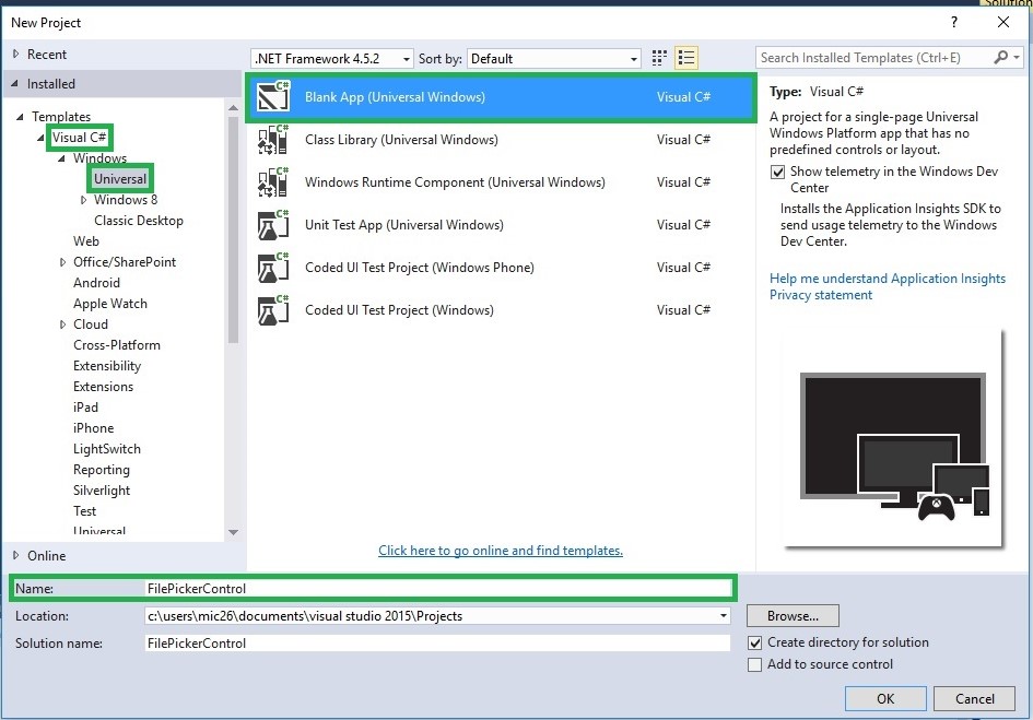 Step 1: Create a Blank Windows 10 Universal App (C#) and enter App Name.