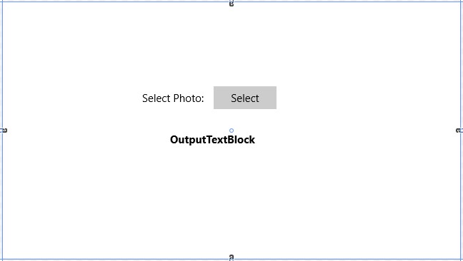 Next add one Button and two Textblock controls for displaying information from the toolbox then change the button name to SelectAPicture and TextBlock2 Name: OutputTextBlock.