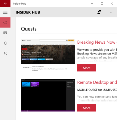 Once you click on the Insider Hub, you will see it will open the following app. If you're not logged in to Windows, it will ask you to login.