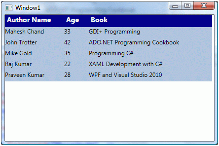 - <TextBlock FontSize="12" Grid.Row="1" Grid.Column="0">Mahesh Chand</TextBlock>