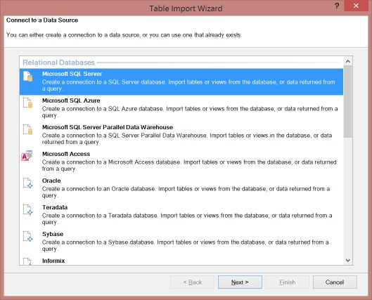 As you can see from the Table Import Wizard, data in Excel can be imported from SQL Server, Azure, Access, Oracle, Terada, Sybase and several other data sources.