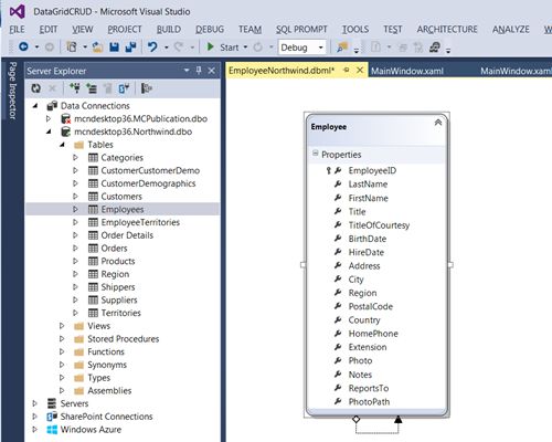 So far, we have seen the basic operations in the DataGrid working with a collection of objects. Now, let's work with a database. For our sample, we will use an existing Northwind database provided by Microsoft.