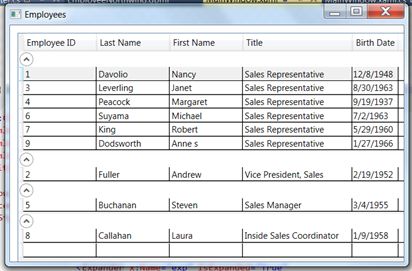Listing 44The following shows the DataGrid XAML code with a grouping style.