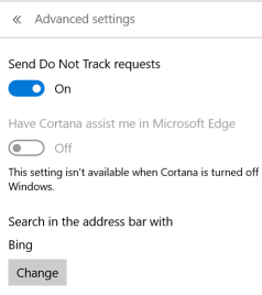 Scroll down and you will see Search in the address bar with Bing and a Change button.