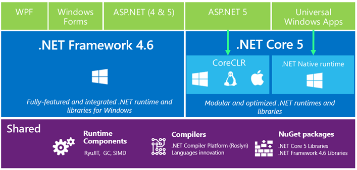 .NET 2015 is the next generation of .NET, its components and tools. .NET 2015 is the .NET universe with all application types including Windows Forms, WPF, ASP.NET and Universal Windows Apps. It also includes .NET Framework 4.6, .NET Core 5, Runtime components, compilers and more.