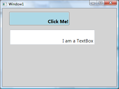 Now what if you want to place contents of a Button and TextBox on different positions? Let's say, you want to set the contents of the Button and TextBox to bottom and right. This comes handy when the size of elements is larger than the size of contents.