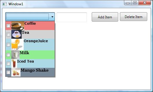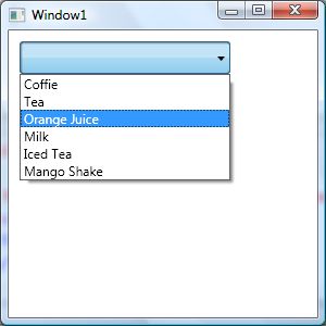 - <ComboBoxItem Background="LightSlateGray" Foreground="Orange" Content="Mango Shake"