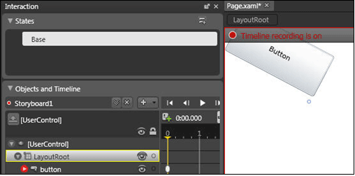 Select the Properties pane for the Button and after scrolling to the Transform property group, choose Skew option and skew the button. Figure 4 shows this setting in action.