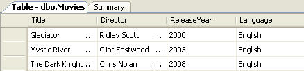 This article assumes that you are using SQL Server 2005. Create a database named MovieDatabase. Create a table, Movies, in it with the following data in it:
