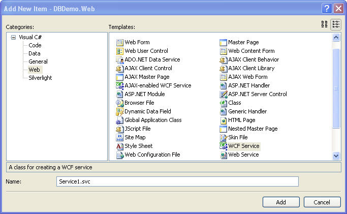 In the next part of this article, we will make use of this WCF service and access data in the Silverlight application, DBDemo.