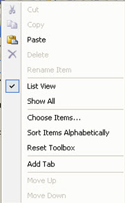 We open the Toolbox and right click on it. In the shortcut menu that opens as shown in Figure 2, we select the Choose Items... option.