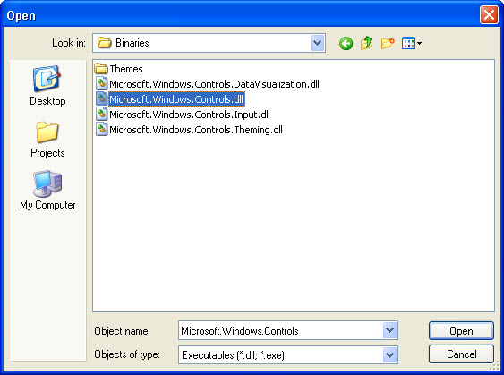 Then we click Browse because we want to select the dll for the Toolkit. We navigate to the folder where we'd installed the Toolkit files. We select the Microsoft.Windows.Controls.dll file as shown in Figure 4.