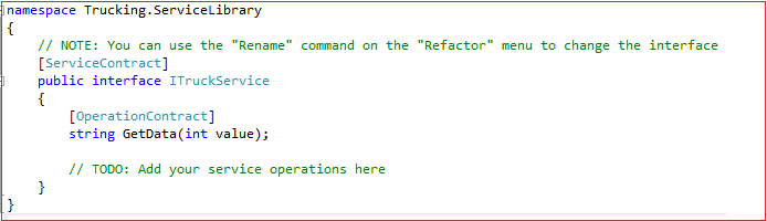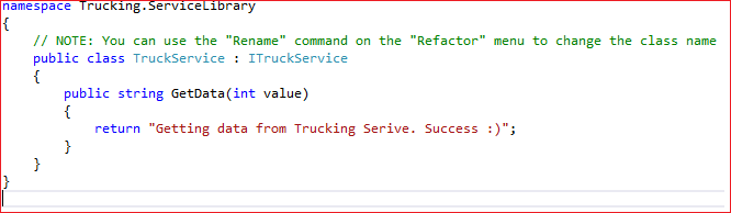 Add two class files, one for interface (ITruckService.cs) and another one (TruckService.cs) for implementing the interface. See the following image.