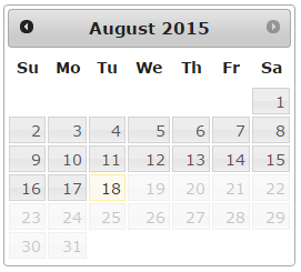 Figure 4 shows how to disable dates (3rd, 11th, 20th, 25th August 2015) in Gray so that the user can't select those dates.