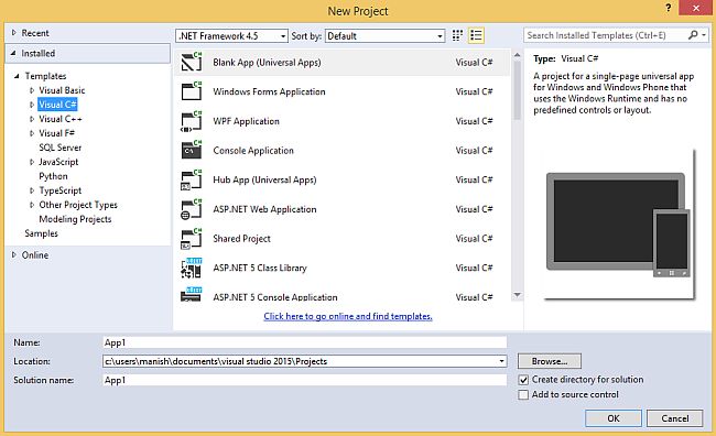 Let's start a new project and see what's new that we have in Visual Studio 2015 Preview.