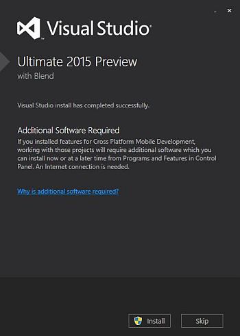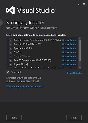 Since this time Microsoft goes out of the box and is embracing cross-platform too, after installing Visual Studio successfully, setup asks you to go for installing additional features for Cross Platform Mobile Development. You can skip that also if you don't want to go cross-platform for the time, but I am going for it.