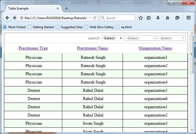 In my last article “Introduction to AngularJS”, we learned the basics of AngularJS. Now I want to do an exercise on AngularJS. In this I am trying to build an application that has table population data from JSON. There should be three cascading dropdowns to filter the data in the table. The user should also be able to sort the table.