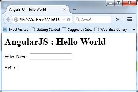 Now note the line <div ng-app=""> where “ng-app” indicates that we have an angular application in the <div>. It is also used to load various AngularJS modules into the AngularJS Application. “ng-model” helps to bind the values of AngularJS application data to HTML input controls. The {{ }} expression is an AngularJS data binding expression. Here we can also use “ng-bind” to bind the model value to our HTML page.